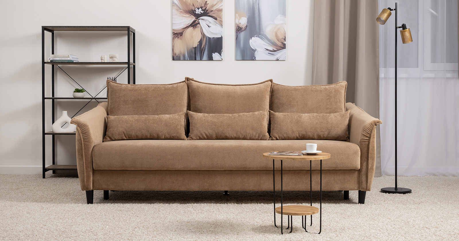 Изогнутые подлокотники в форме лепестков придают коллекции изысканный и элегантный вид, а дополнительные декоративные подушки обеспечат поддержку поясницы и помогут уютно устроиться на диване. В наполнении дивана используется высокоэластичная пена, которая адаптируется к форме вашего тела и гарантирует максимальный комфорт во время отдыха.