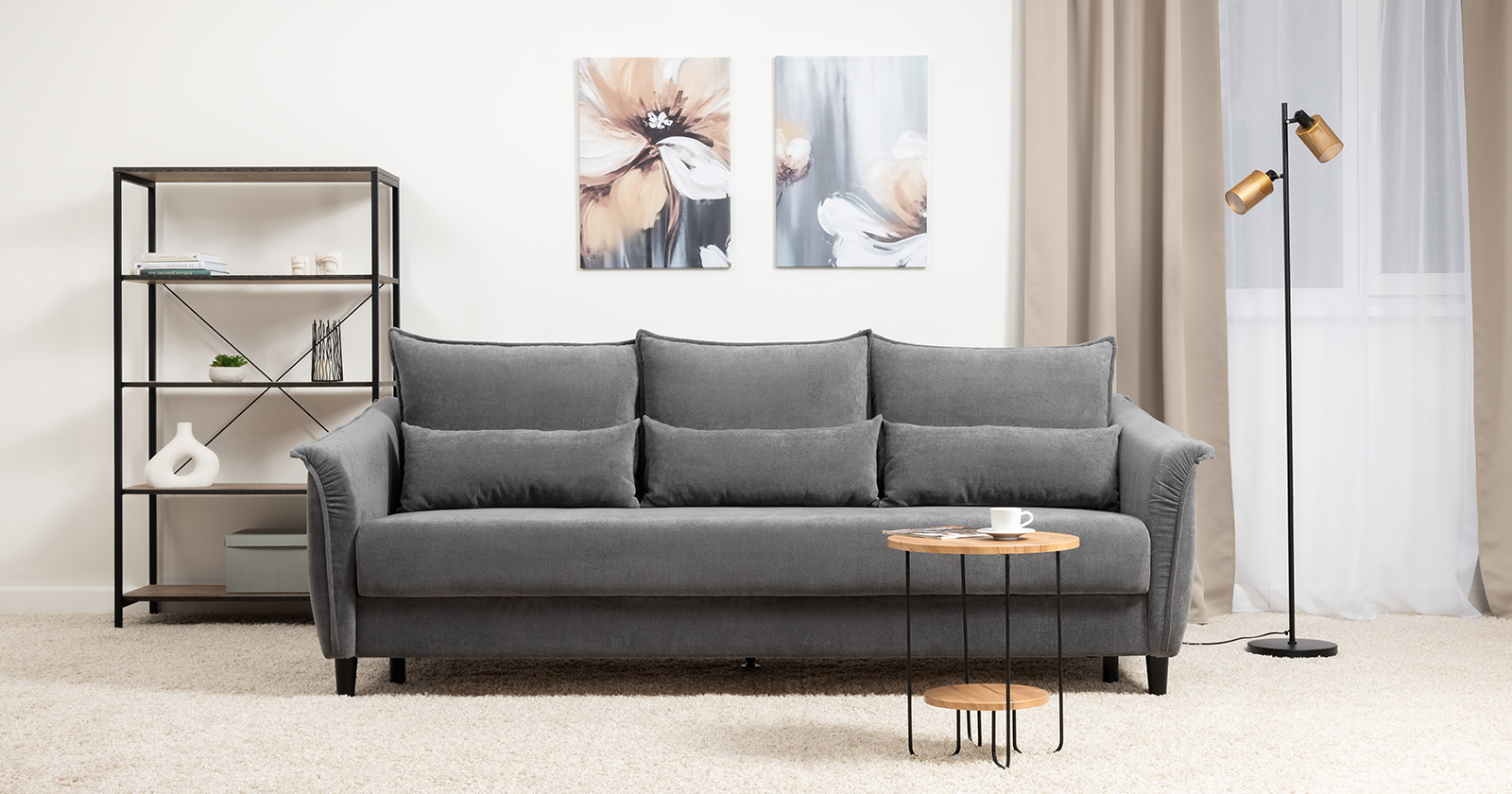 Изогнутые подлокотники в форме лепестков придают коллекции изысканный и элегантный вид, а дополнительные декоративные подушки обеспечат поддержку тела и помогут уютно устроиться на диване. В наполнении дивана используется высокоэластичная пена, которая адаптируется к форме вашего тела и гаранитует максимальный комфорт во время отдыха.