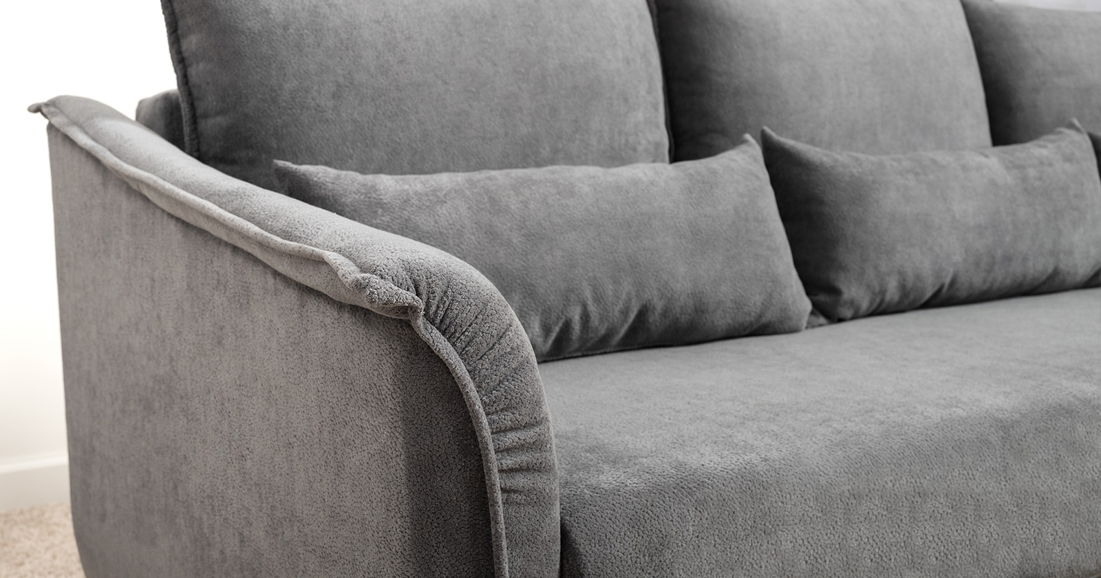 Изогнутые подлокотники в форме лепестков придают коллекции изысканный и элегантный вид, а дополнительные декоративные подушки обеспечат поддержку поясницы и помогут уютно устроиться на диване. В наполнении дивана используется высокоэластичная пена, которая адаптируется к форме вашего тела и гарантирует максимальный комфорт во время отдыха.