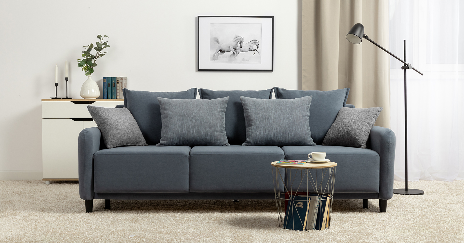 Диван-кровать прямой Дакота ТД 584 велюр Vendetta 24 синий, Riga 1598 z1 col 20 серо-голубой, Romeo 06