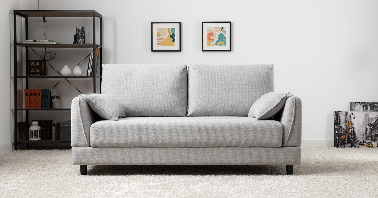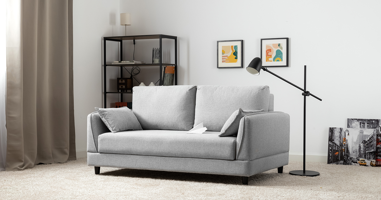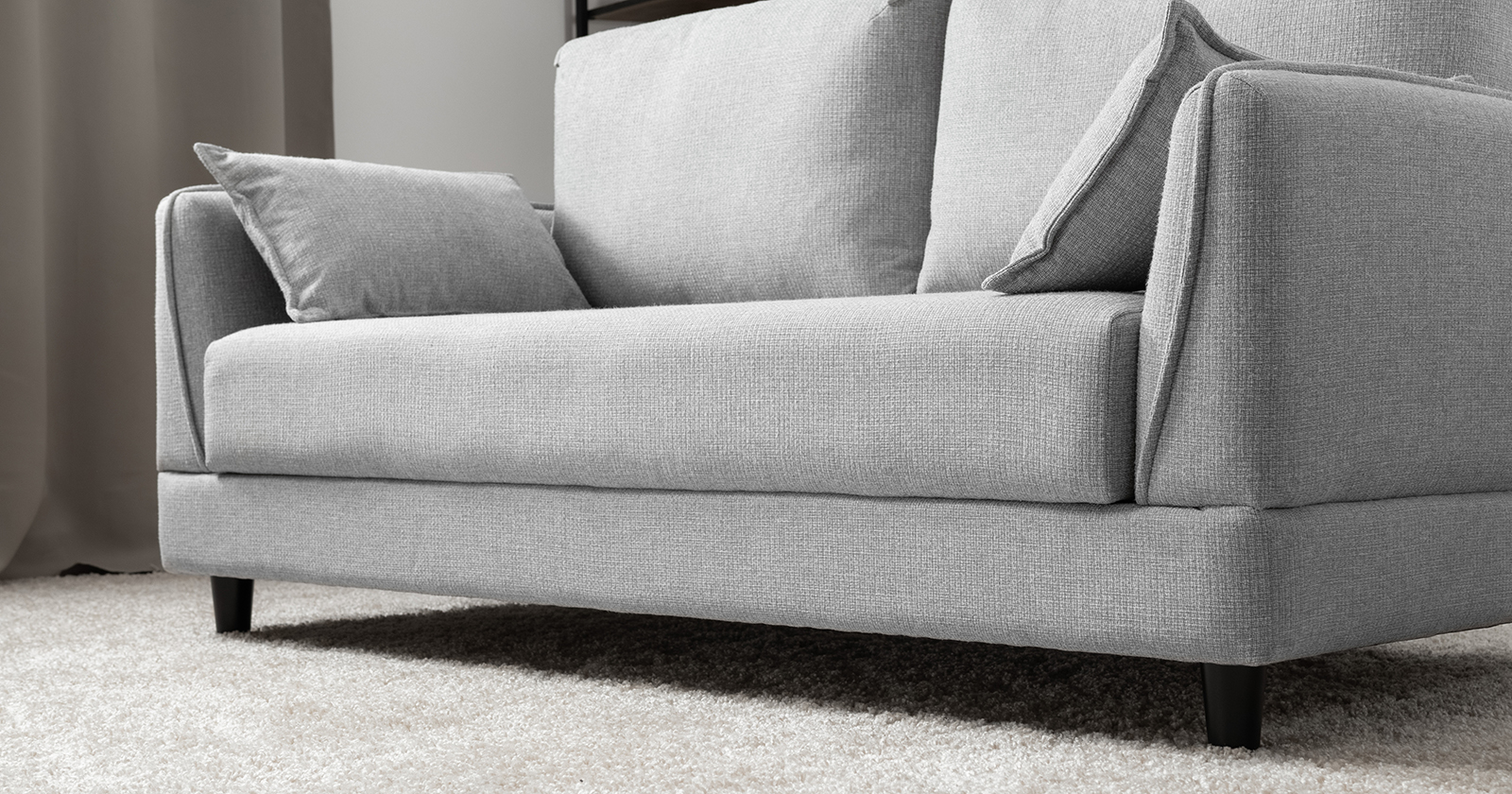 Лаконичный дизайн с деревянными ножками и узкими подлокотниками удачно дополнит не только интерьер гостиной, но и кабинета, и кухни. Кроме того, диван Макс позволяет организовать спальное место в ограниченном пространстве.