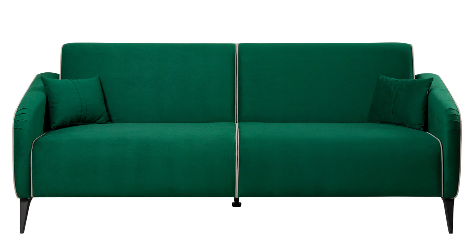 Диван-кровать прямой Ноэль ТД 446 велюр темно-зеленый малахитовый, светлый кварцевый серый