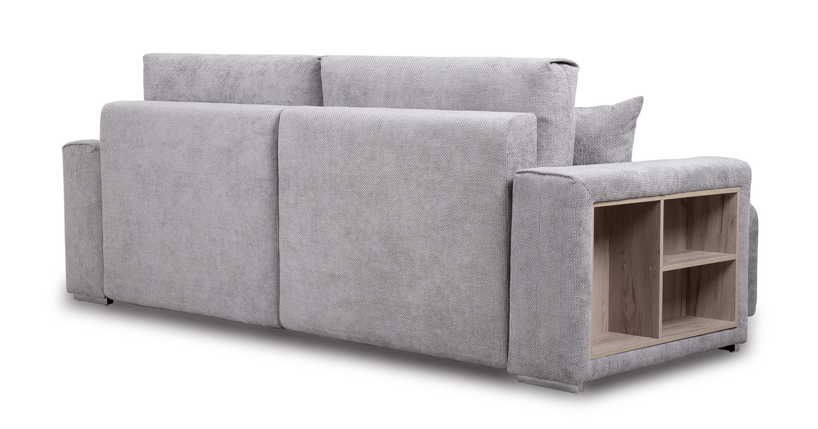 «Компоновка 1» арт. 712 состоит из: оттоманки арт. ТО 712, дивана арт. ТД 712, широкого подлокотника арт. ТБ 712, широкого подлокотника с ящиком арт. ТБ 712, двух приспинных подушек арт. 712 и двух декоративных подушек арт. 712.