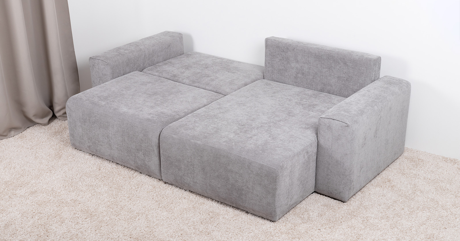 Диван-кровать угловой Оксфорд 712 композиция 1, шенилл MUZA 07 светло-серый, модульная система, сборка на любую сторону