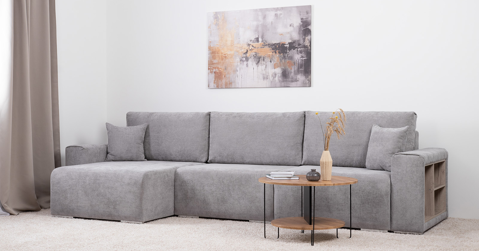 Диван-кровать угловой Тэдди 1506 композиция 2, букле Pique 011 серый, модульная система, сборка на любую сторону