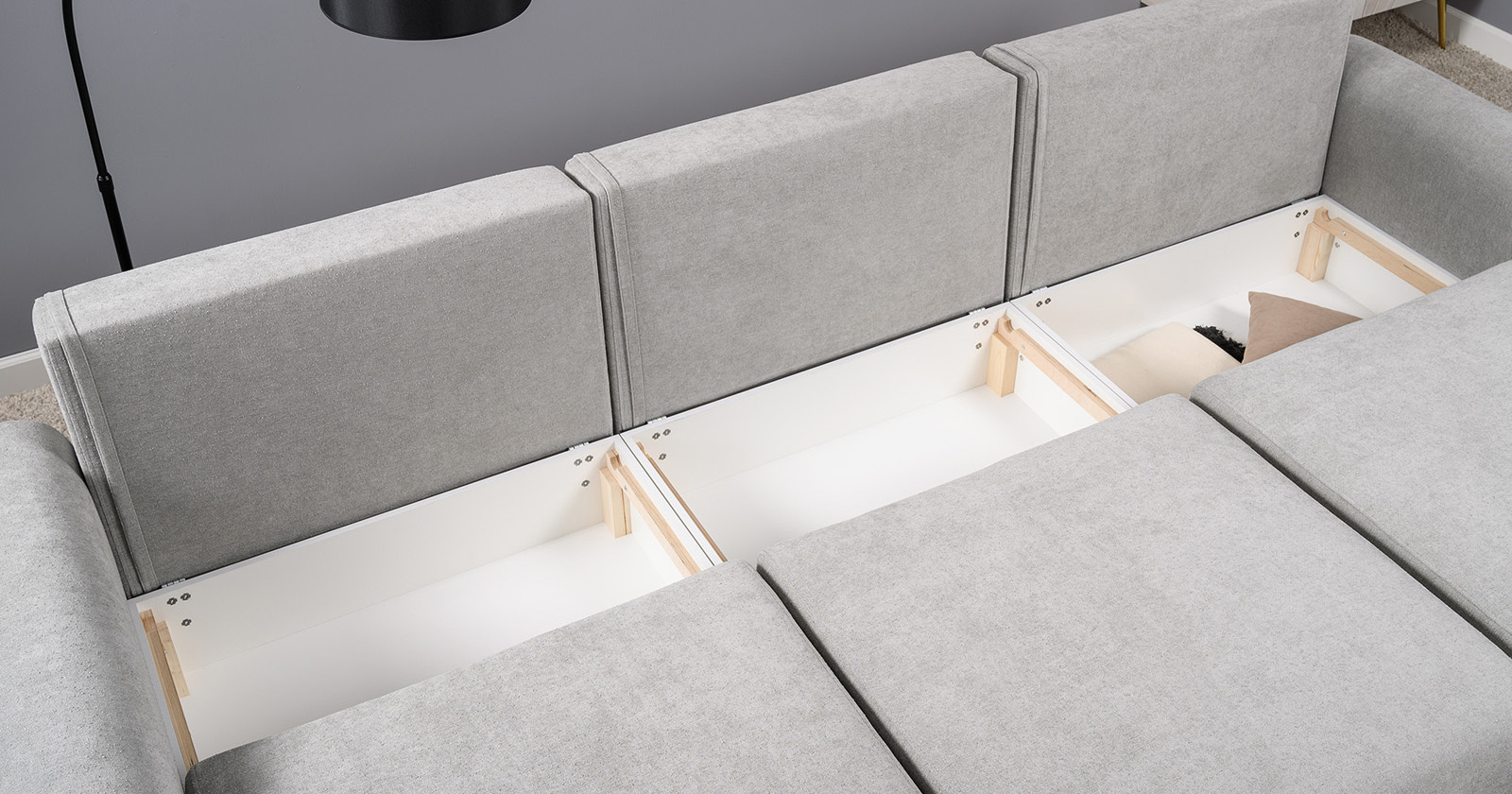 Диван-кровать угловой Тэдди 1506 композиция 3, букле Pique 011 серый, модульная система, сборка на любую сторону