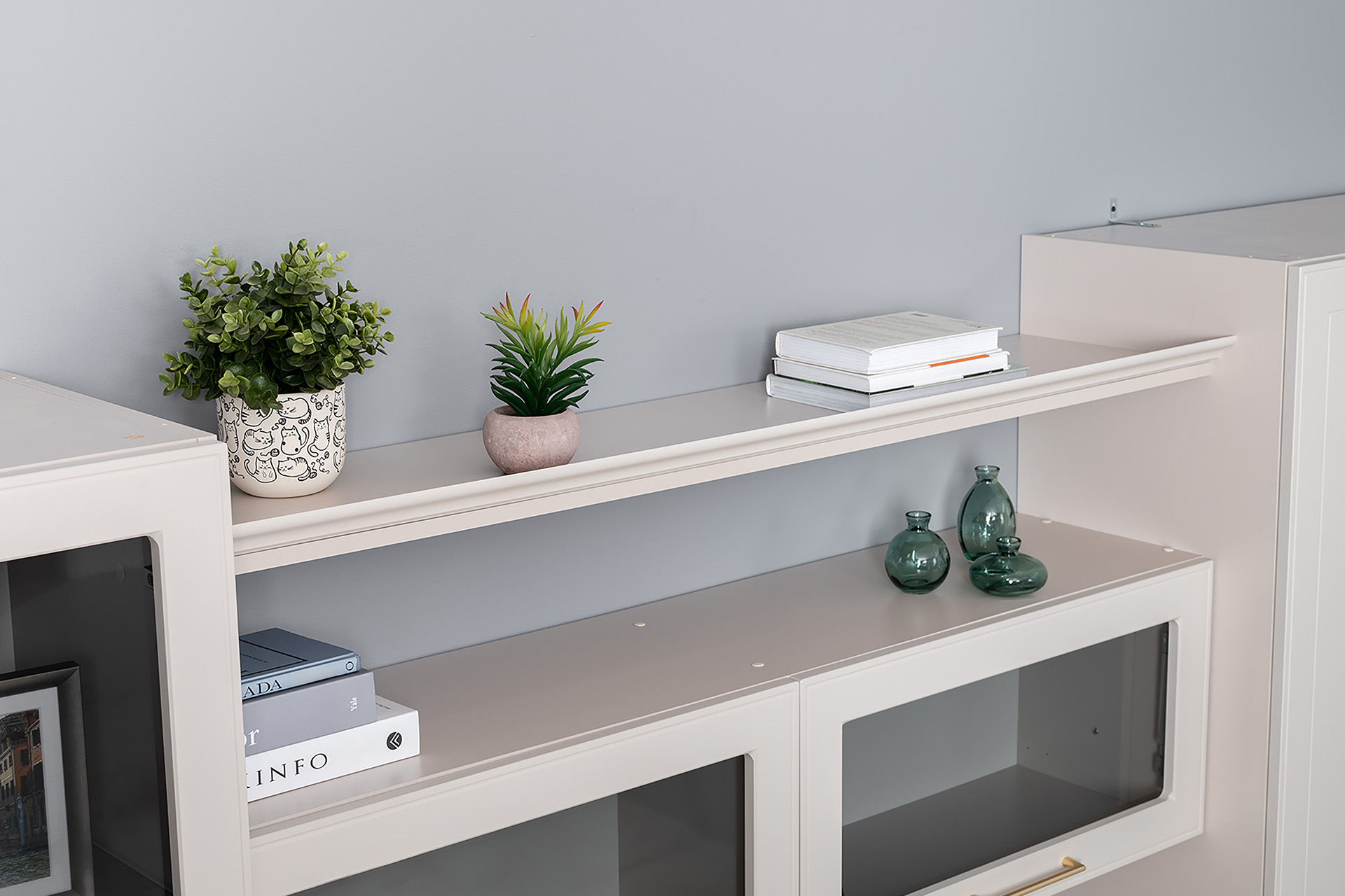 Для более завершенного образа, к шкафам можно дополнительно приобрести карнизы.