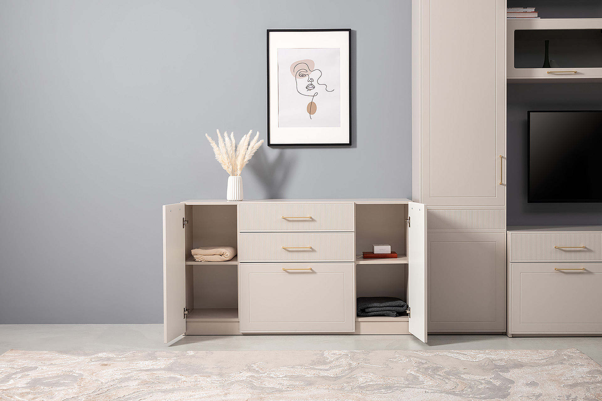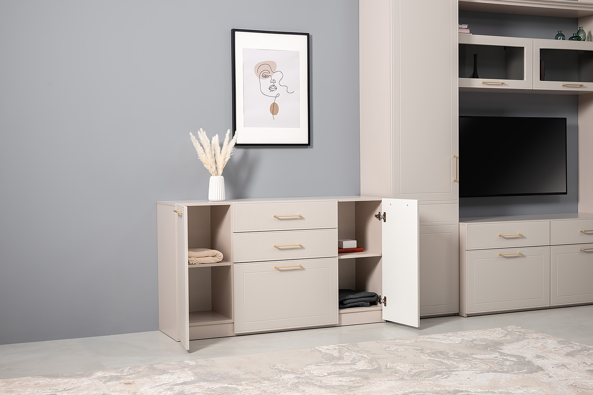 Тумба под ТВ Ричфорд 16.61 кашемир 5981 BS, моно керамика D166-2 ПВХ, белый PE шагрень