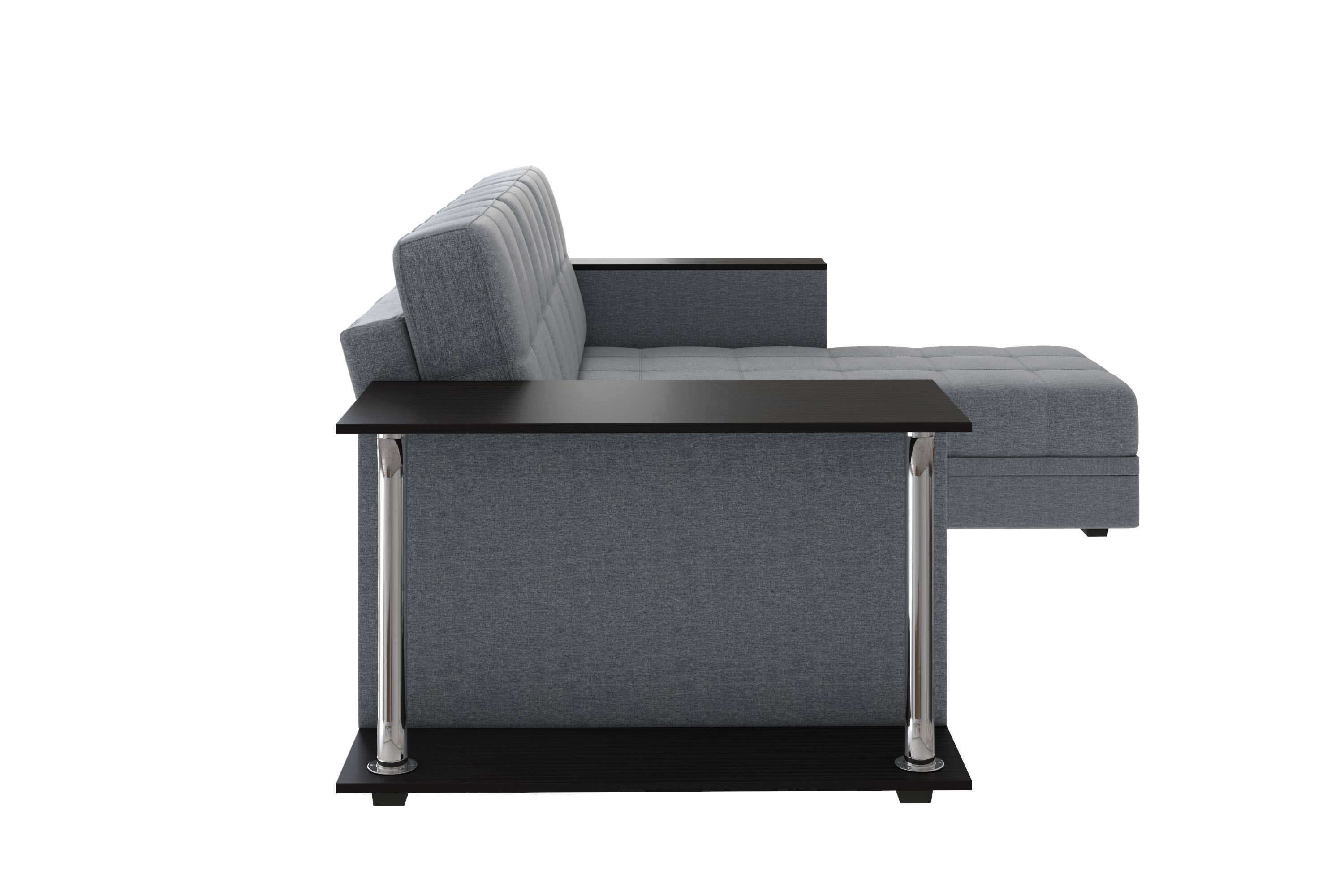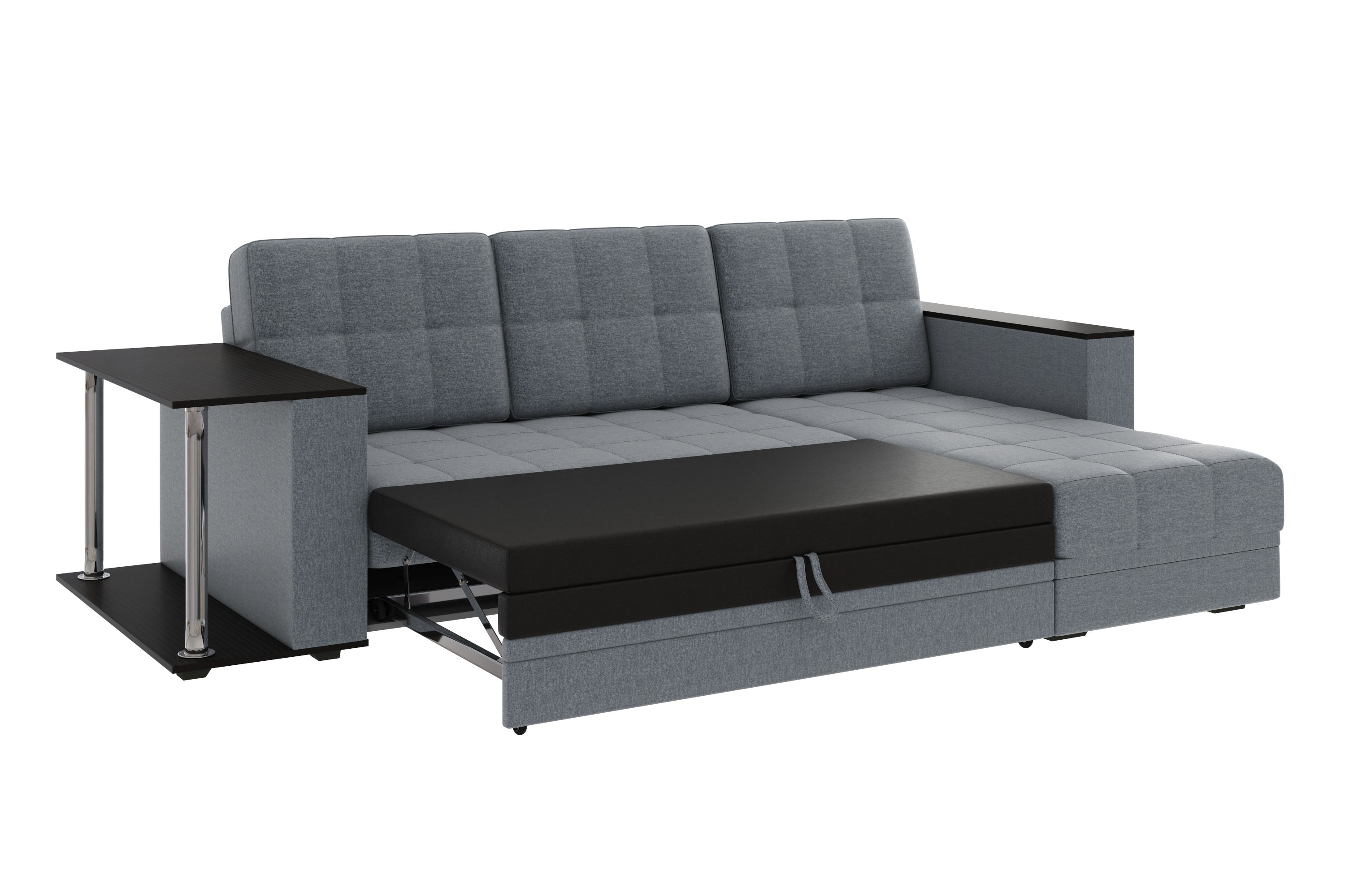 Диван-кровать угловой Атлант ткань рогожка серый со столиком Венге со спальным местом (собирается на любую сторону)