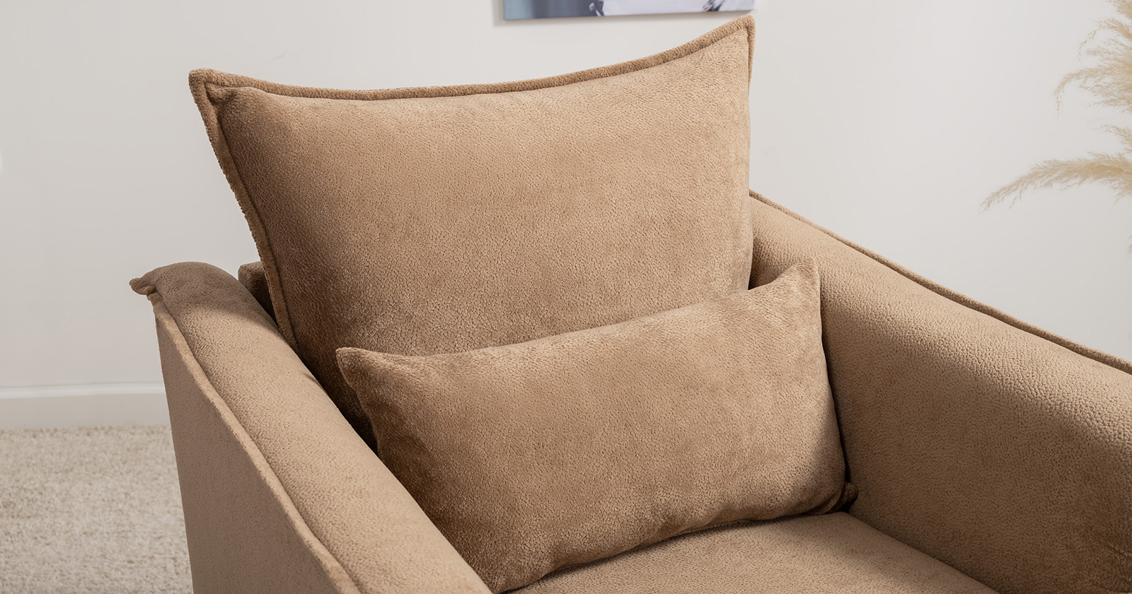 Изогнутые подлокотники в форме лепестков придают коллекции изысканный и элегантный вид, а дополнительные декоративные подушки обеспечат поддержку поясницы и помогут уютно устроиться на кресле.
