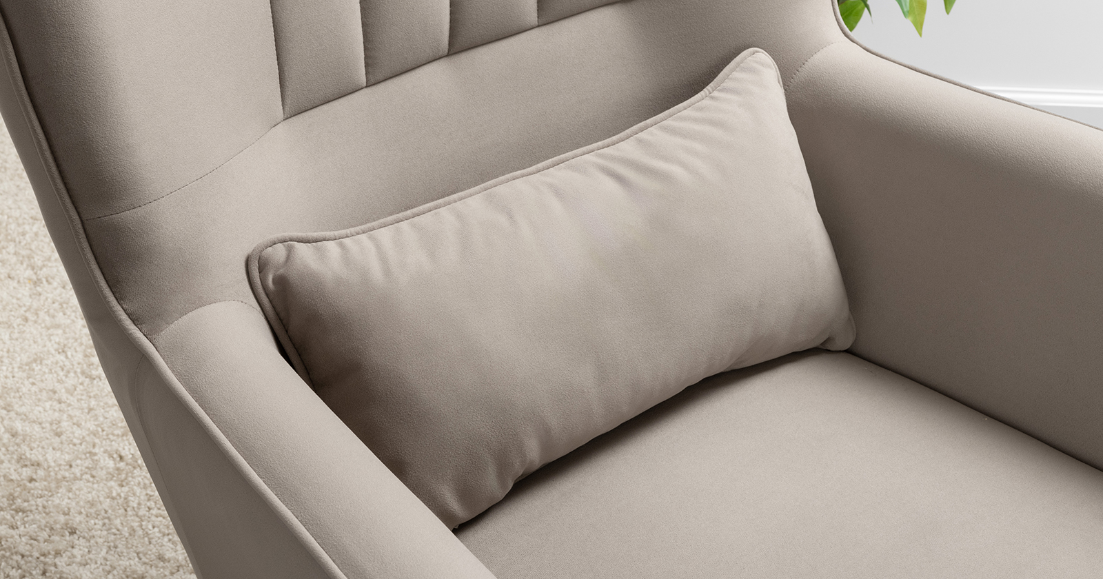 Вертикальная объемная стежка в средней части спинки; кант на спинке, подлокотниках и декоративной подушке