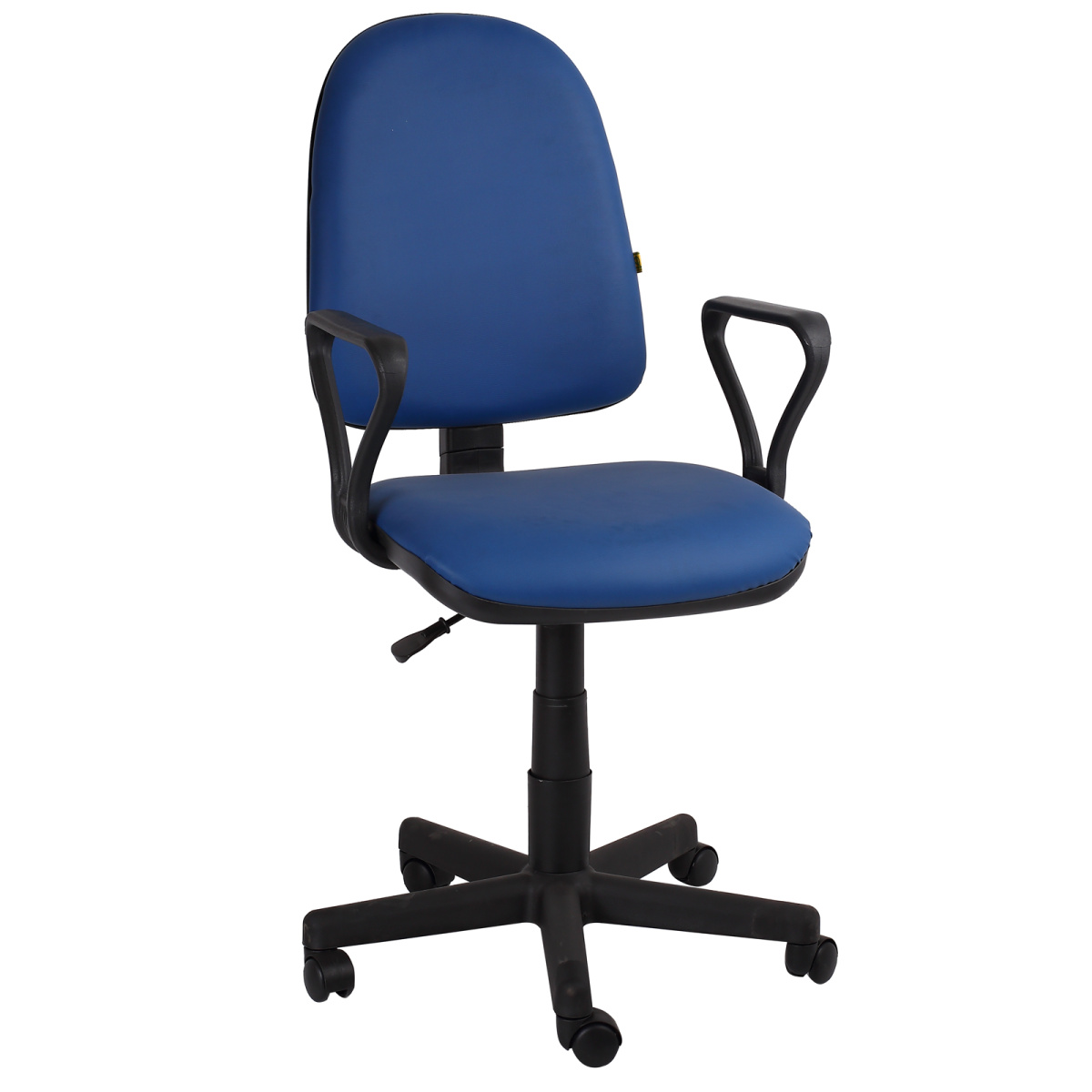 Кресло Престиж Самба обивка кожзам синий, подлокотники пластик, крестовина пластик, механизм отклонения спинки