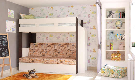 Двухъярусная кровать Акварель сэкономит свободное пространство в комнате, обеспечив спальное место сразу для двоих детей. Модуль оснащен книжной полкой и вместительными бельевыми ящиками, что позволяет использовать их в качестве дополнительного места для хранения вещей. Лестница, которая входит в комплект состоящая их четырех ступеней-ящиков дает дополнительное место для хранения для игрушек и детских вещей. Ограничитель без острых углов на верхнем ярусе, обеспечит ребенку безопасный сон.