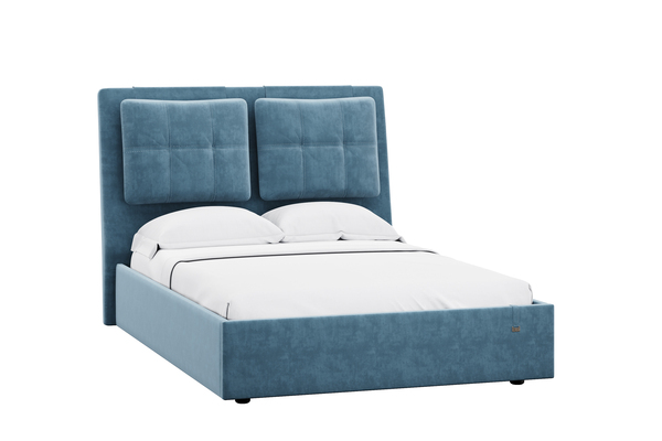 Кровати выполнены в нейтральных и в ярких тканях велюр, что позволяет подобрать подходящий вариант почти под любой интерьер. В качестве декора применяются декоративные подушки на изголовье.