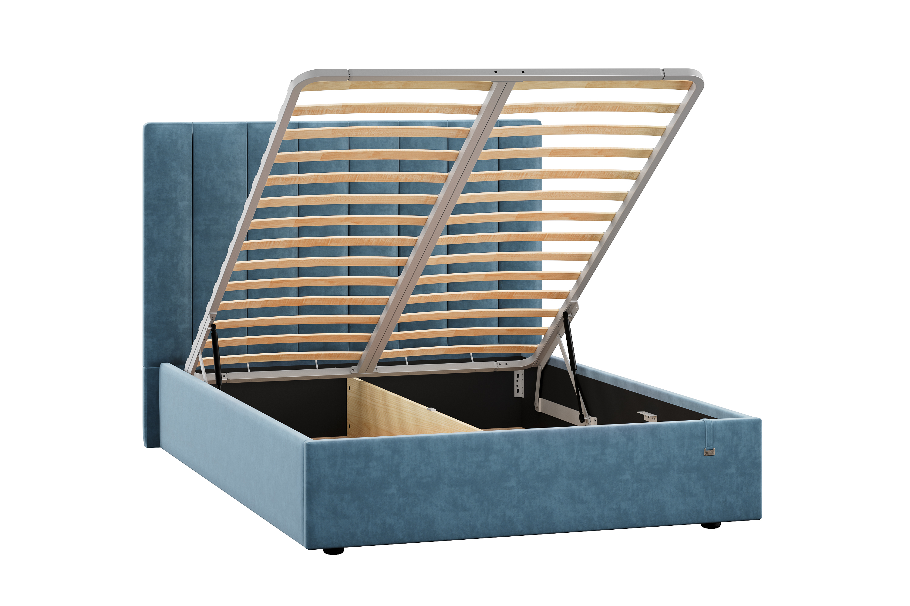 Подъемный механизм легок в управлении, а вместительный короб внутри кровати подойдет для хранения подушек, белья и других вещей. Мягкие тканевые ручки облегчают процесс подъема основания. Купить кровать можно удобным способом: оформить заказ в интернет- магазине, положив товар в корзину. С кроватями можно приобрести комод и тумбу «Ester». Ткань обивки возможно выбрать в цвет с кроватью, из представленных вариантов велюра.
