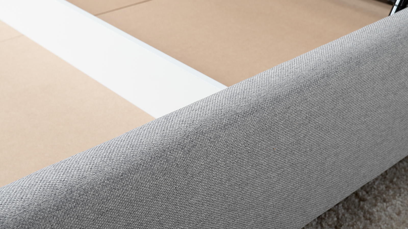 Cкругленный торец изголовья оформлен контрастным кантом.