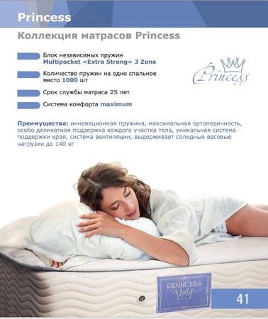 Матрас Princess Caroline – крепкий, упругий и надежный. Эти свойства ему придает натуральный наполнитель – кокосовое волокно. Надежная пружинная конструкция в сочетании с упруго-жестким кокосовым волокном и высокоэластичным материалом является идеальной опорой для позвоночника. Глубокая рельефная стежка чехла из дышащей ткани с серебром обеспечивает матрасу дополнительную прочность, долговечность и хороший воздухообмен. Этот матрас будет служить вам долго и преданно в течение многих лет, гарантируя спокойный сон, отличную восстанавливаемость сил и бодрость духа.