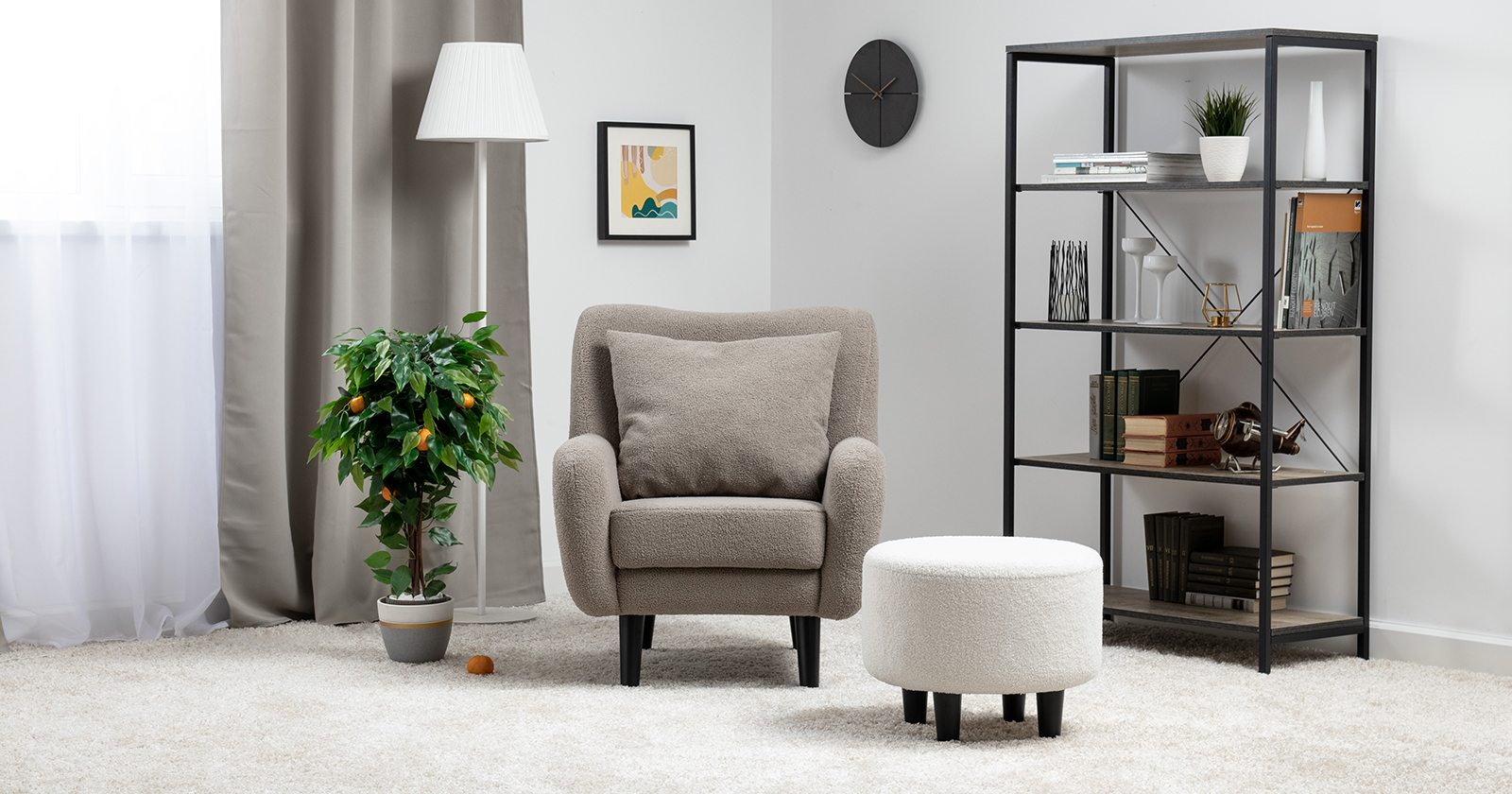 Ткань букле делает кресло особенно уютным и мягким