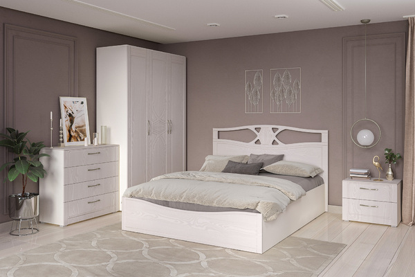 Изголовье кровати имеет выраженную сквозную фрезеровку, которая обеспечивает оригинальный и привлекательный внешний вид.