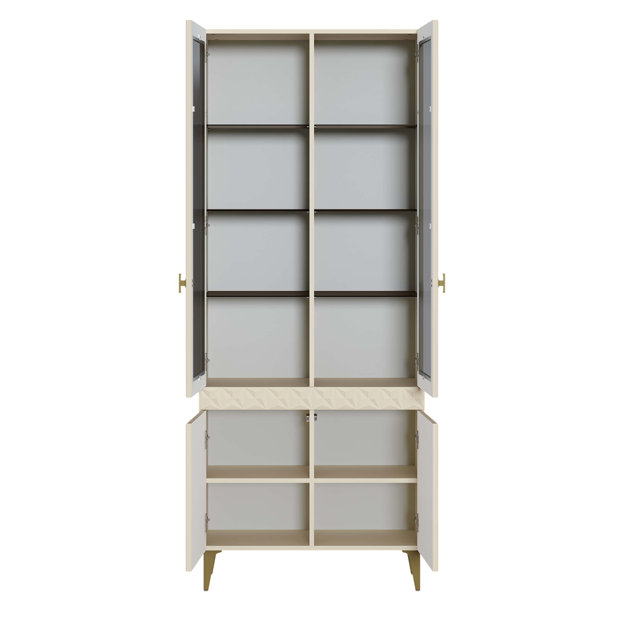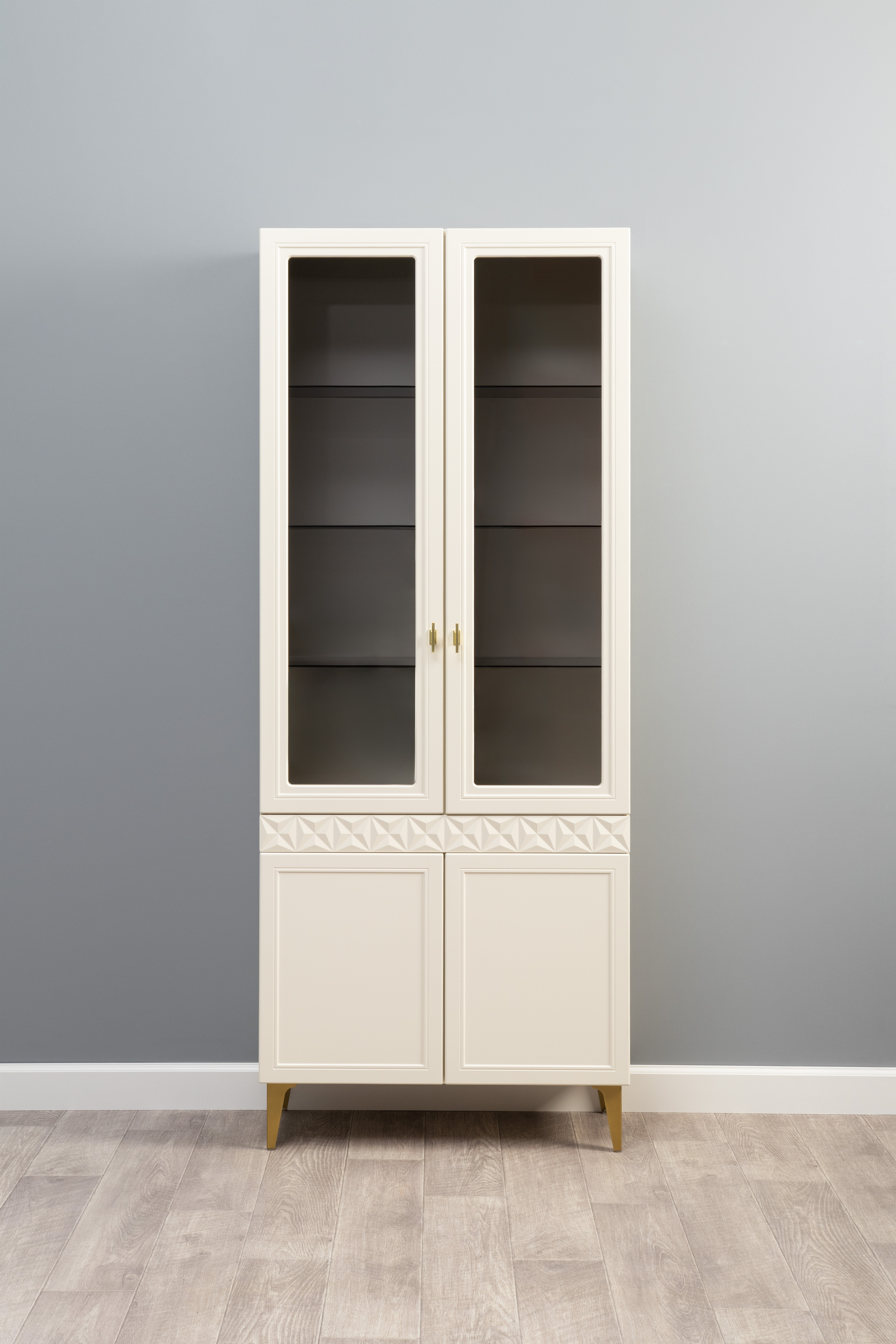 В коллекции представлены три типа витрин с тонированным закалённым стеклом, которые придают пространству лёгкость и свет. «Марион» — идеальное сочетание традиций и актуального дизайна в каждой детали.