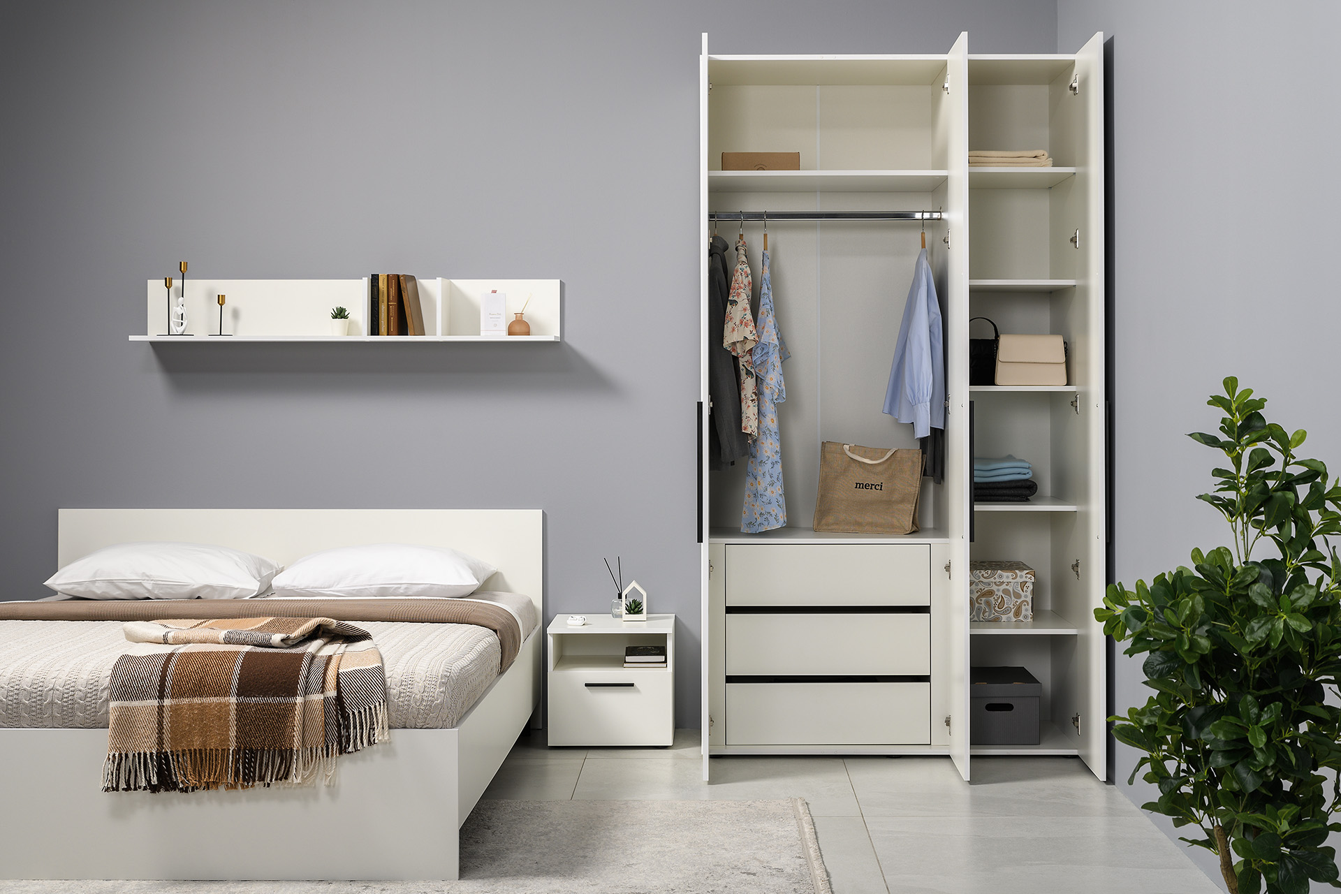 Шкаф для одежды Эйр 13.340 белый PE шагрень, собирается на любую сторону