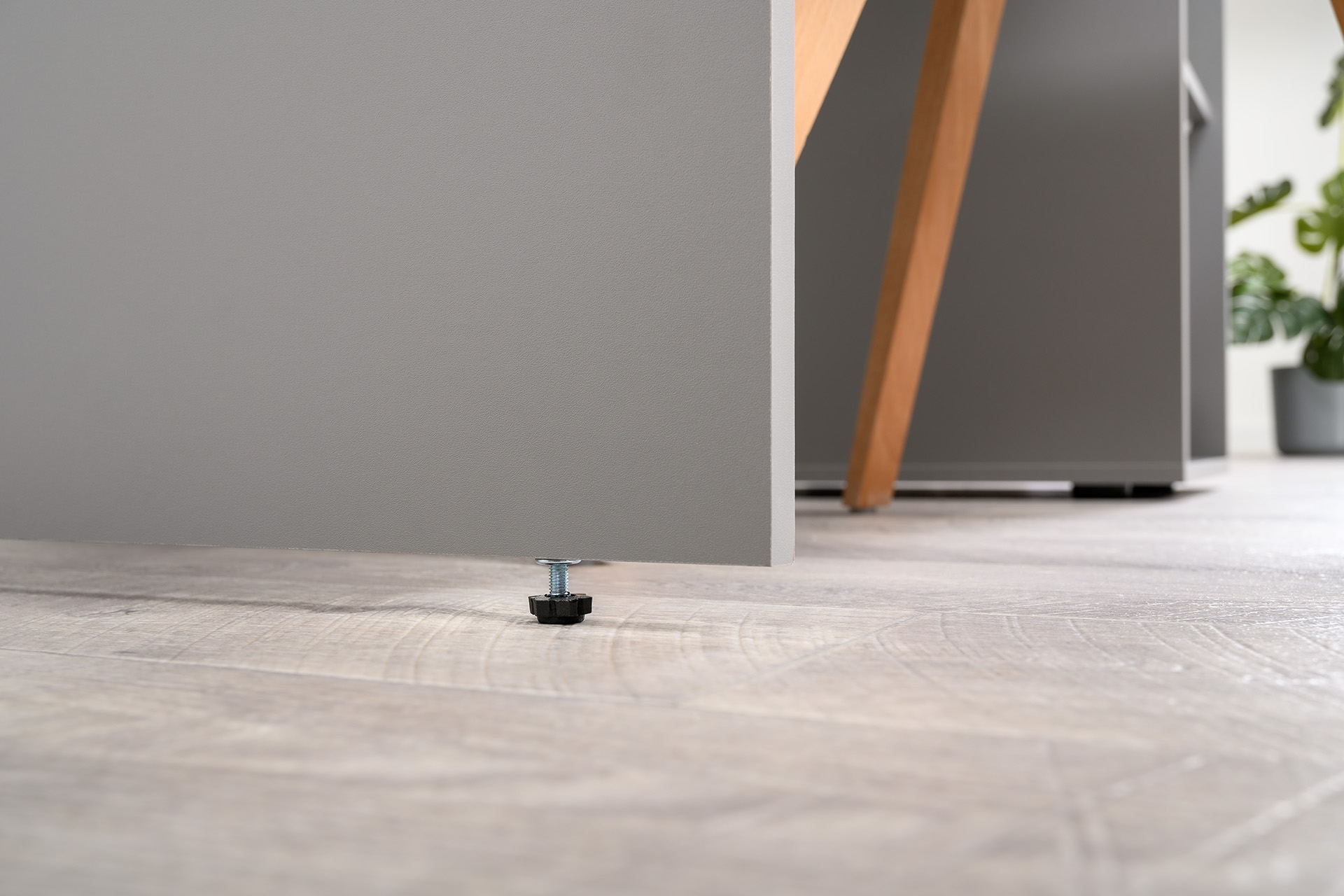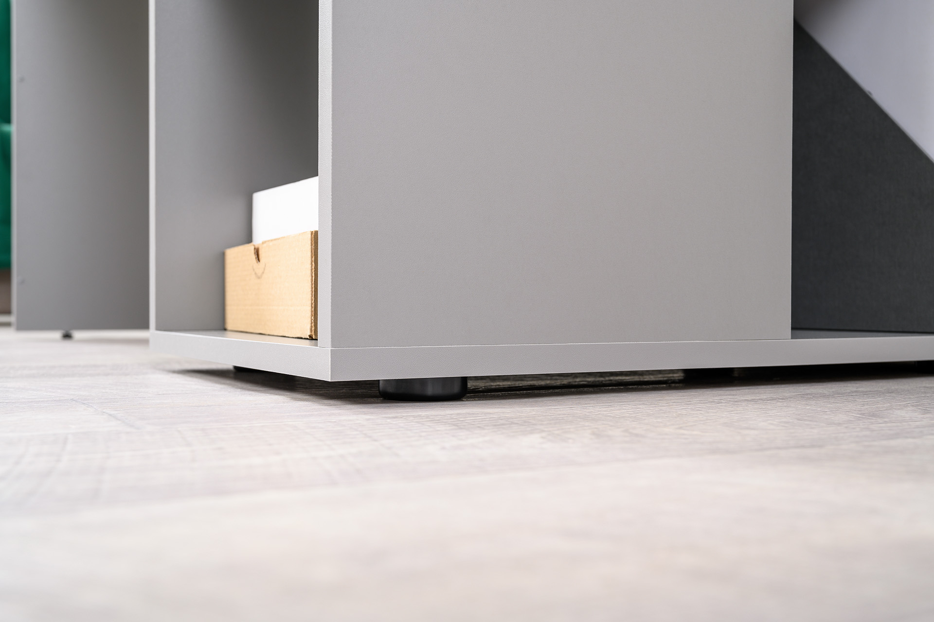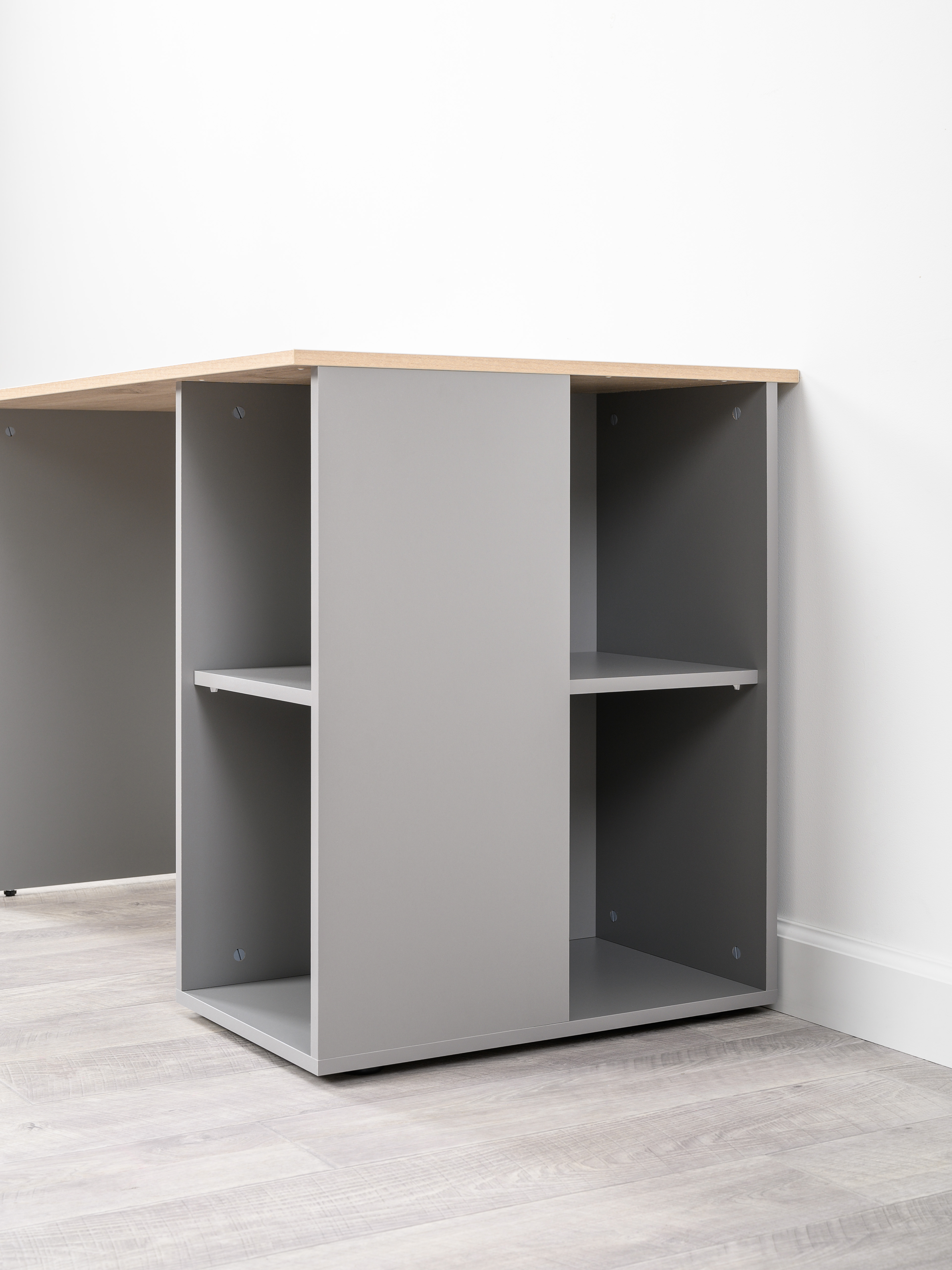 Стол письменный Лайт 12.163 серый шифер, дуб белый exclusive OW D4430, сборка на любую сторону, два варианта сборки тумбы