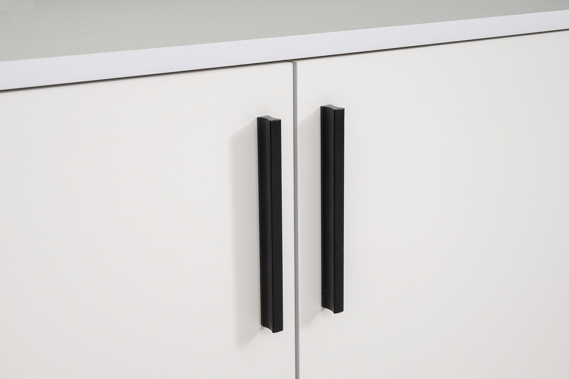 Модули универсальны и сочетаются между собой. Открытые и закрытые ниши для хранения, защитные пластиковые демпферы, съемные полки, направляющие полного выдвижения в ящиках – комфорт продуман до мелочей.